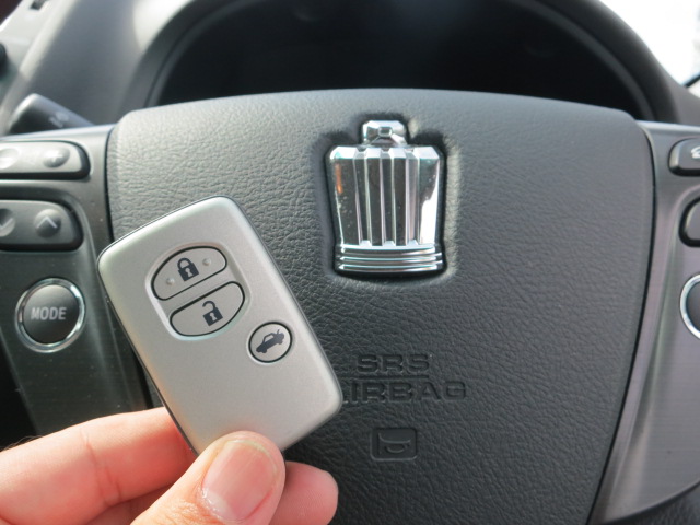 今のクラウンはエンジンをかけるカギ穴の無いスマートキーです。